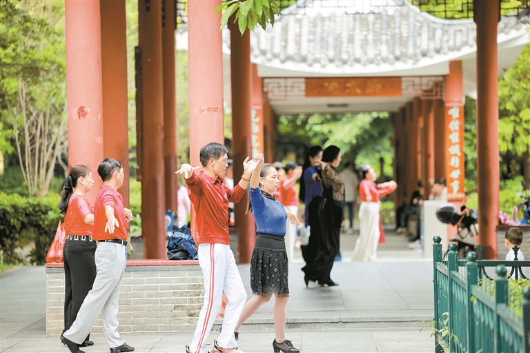 龙华新闻讯(记者 陈建华 文/图)金秋重阳,十五运会的氛围在龙华愈发浓厚。在龙华区的公园里,银发长者们以多样健身方式,用饱满活力诠释“全民健身”的生动内涵。