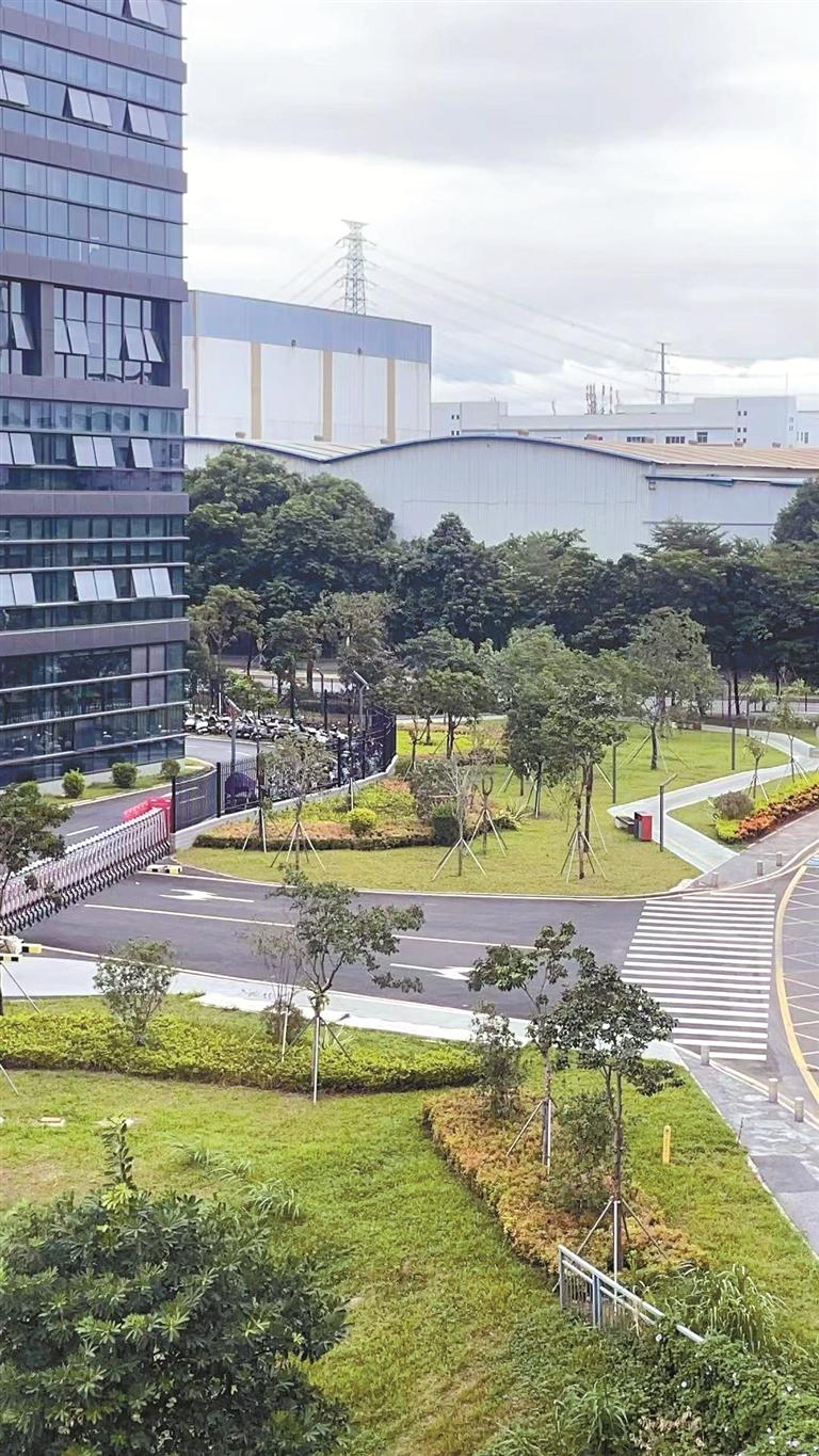 顺络电子研发制造厂区东侧铺设人行道和园路,让员工饭后有了散步的地方。