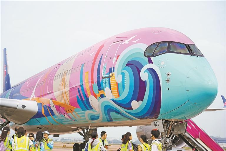 为了迎接十五运会,南航联合全运会组委会精心打造了“活力湾区号”和“大美湾区号”两架主题彩绘客机,分别为空客A350客机和中国商飞C919客机。其中,“活力湾区号”执行深圳—北京大兴、深圳—上海虹桥等航线。