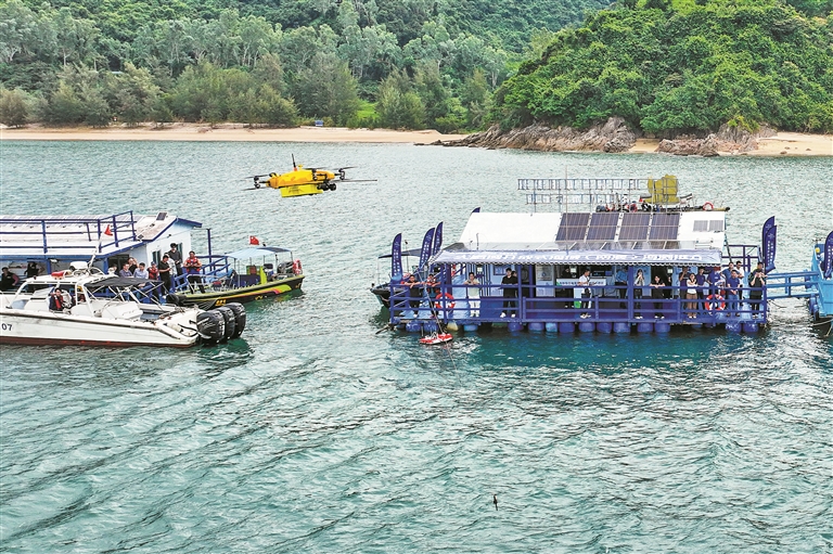 深圳新闻网2025年10月31日讯(深圳晚报记者 魏羽辰)“天上的无人机让一让,水面驻留无人机准备起飞!”随着优纪海洋科技有限公司工作人员的指令,一架空海双域作业的无人机腾空而起,精准将浮标放置到海面标定位置。昨日(30日),2025中国海洋经济博览会大鹏分会场暨大鹏湾开放式海域(南澳)海测推介活动启幕,70余名专家学者、业界人士齐聚深圳南澳,让畲吓湾4平方公里的海域化身为“海洋科技实景试验场”。