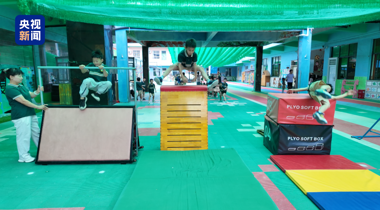 吴建华说,孩子们在体能课上爬高跳跃,不仅锻炼了身体,更在战胜困难时收获成就感,培养出超强的心理韧性。