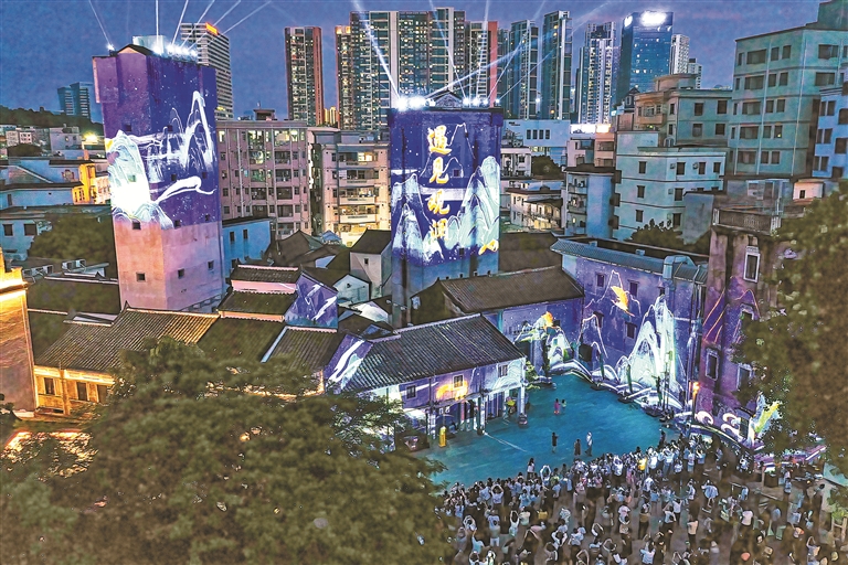 观澜古墟特色灯光秀吸引众多市民。