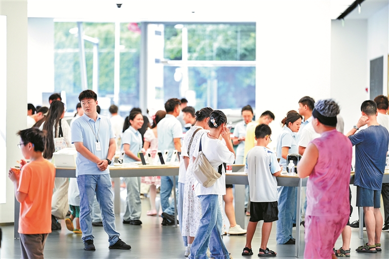 市民在壹方天地购物中心选购电子产品。