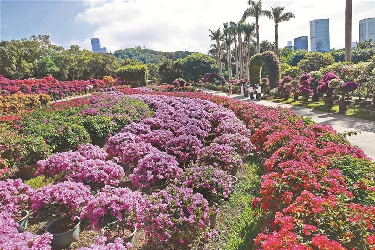 莲花山公园主会场布置面积逾20万平方米,汇集近320个簕杜鹃品种。 深圳特区报记者 李忠 摄