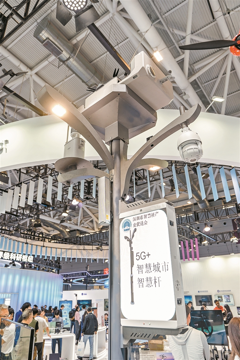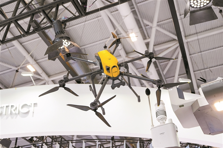 低空经济展区人气同样高涨。安邦科技打造的“科技树”智慧杆矗立场边,杆顶设有无人机停机坪,上部集成路灯、监控设备,中下部还能为电动车充电,杆体上一键报警按钮保障周边安全。在5G技术赋能下,这一智慧杆可挂载无人机场、环境监测等多样化设备,整合城市杆件与管线资源,成为智慧城市的“神经元”,持续为城市“大脑”输送数据。