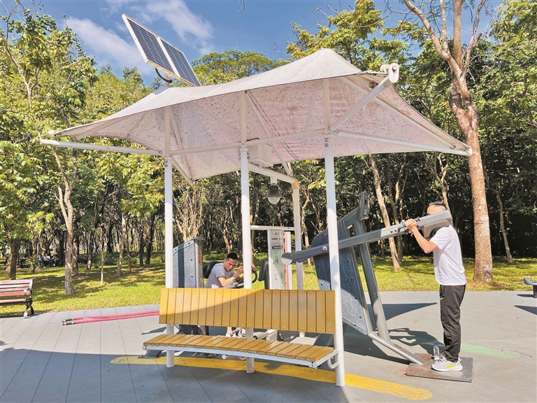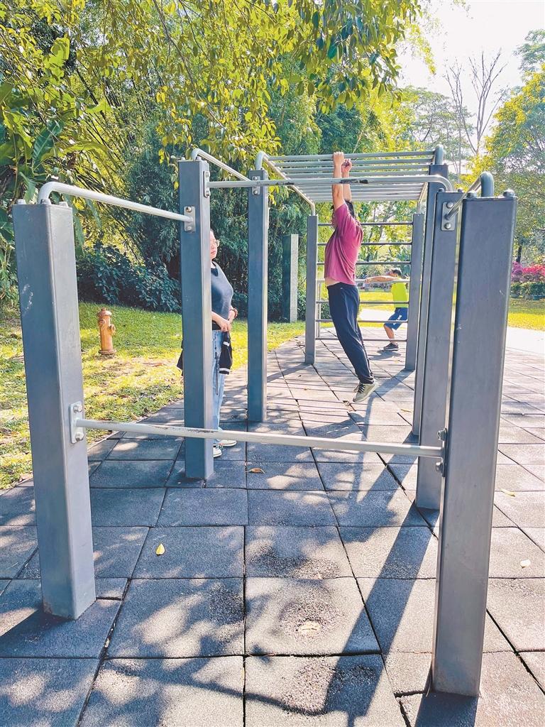 市民在公园运动健身。 深圳晚报记者 伊宵鸿 摄