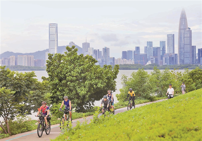 如果觉得跑步太累,还可以换成休闲骑行。目前,深圳已贯通休闲骑行道100余公里,包括宝安固戍码头到福田红树林的50公里滨海休闲骑行道西段,西丽湖15公里休闲骑行道,光明科学城到中山大学深圳校区的20公里休闲骑行道、15公里盐田半山休闲骑行道等一批线路。这些线路一经开通,就立即吸引了大批市民群众和全国各地骑行爱好者打卡体验。