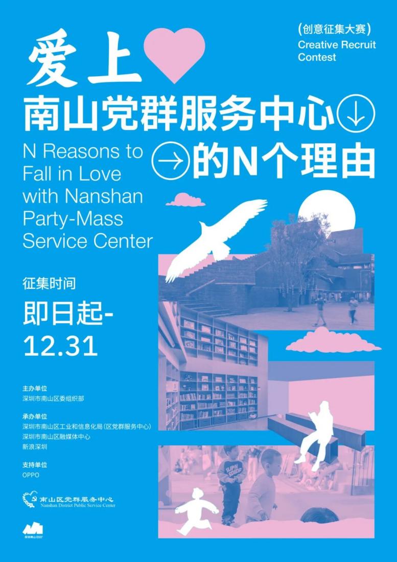 11月18日,“爱上南山党群服务中心的N个理由”创意征集大赛正式开启,活动将延续至12月31日。