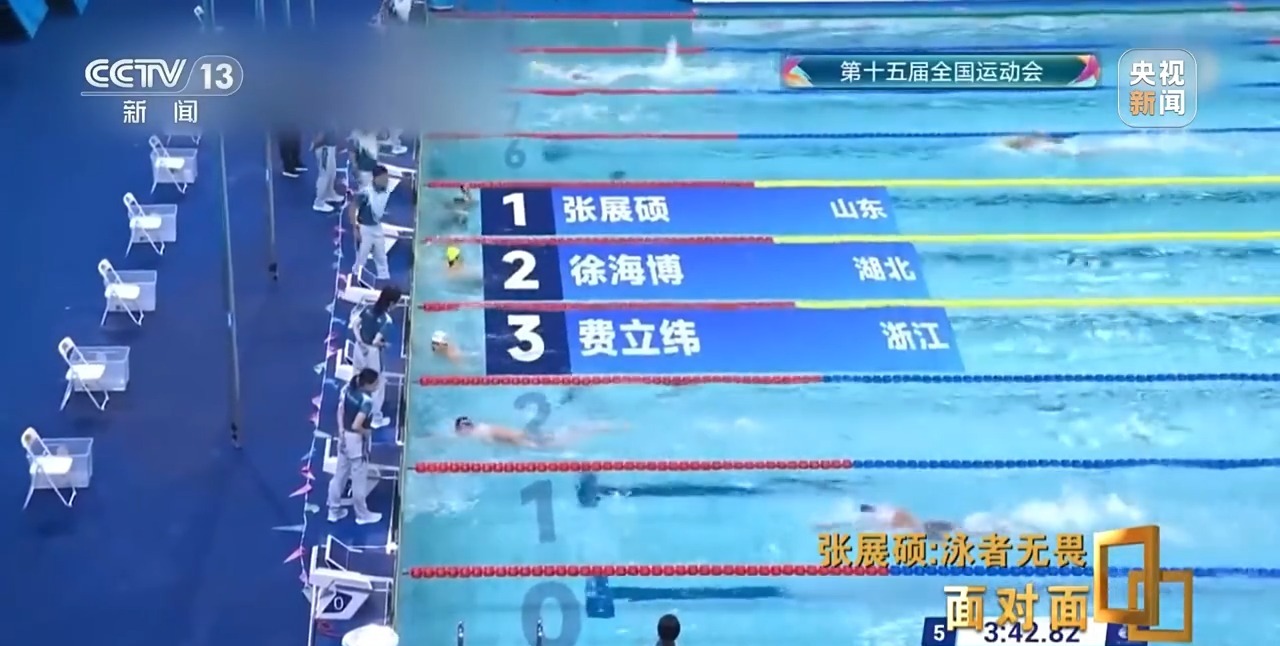两天后的男子200米自由泳决赛,张展硕再次惊艳全场。