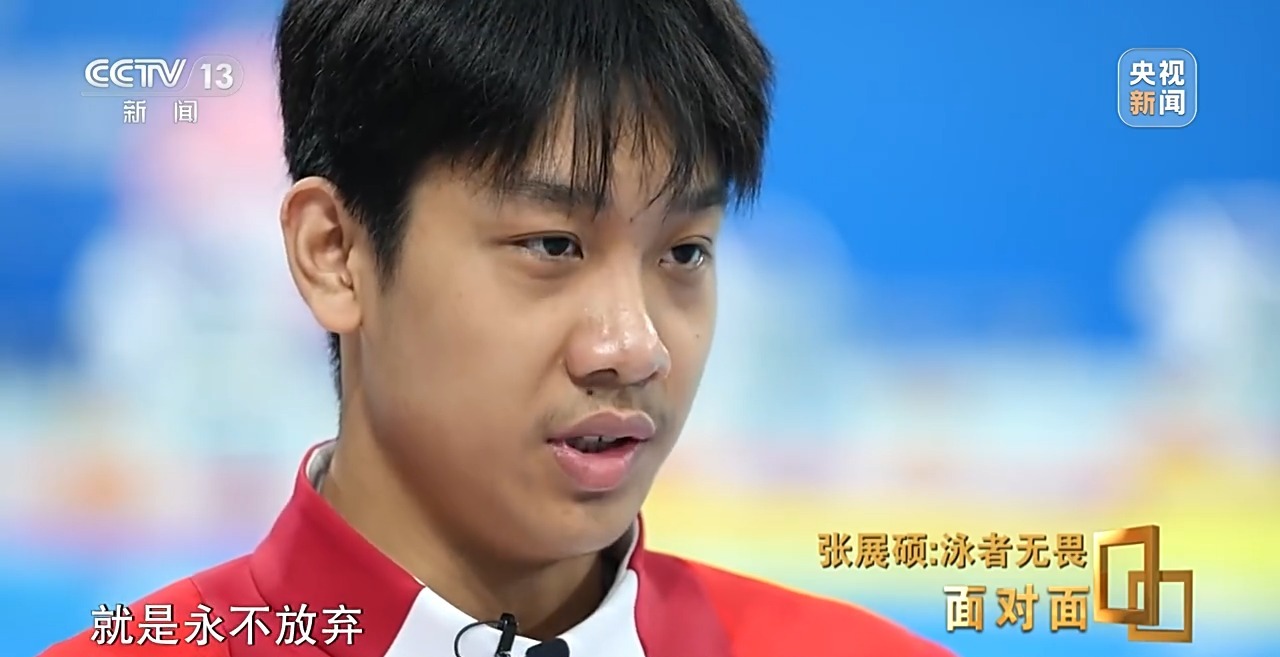 张展硕:我觉得是对冠军的那份渴望和对之前比赛失利的不甘,这两点一直支撑我,在我游不动的时候,我就会去回想这些事情。