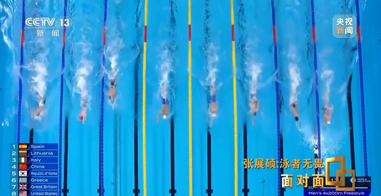2024年2月,多哈世锦赛。这是张展硕职业生涯的第一次“大考”,也是世界泳坛真正记住这个中国少年的开始。男子4×200米自由泳接力决赛,中国队排兵布阵出人意料,年仅16岁,在四名队员中绝对速度并非最快的张展硕,被委以重任,担任最后一棒。