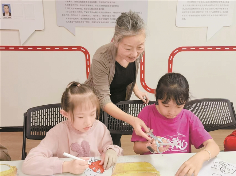 ▲大岭社区“故事奶奶”带着孩子们做手工。