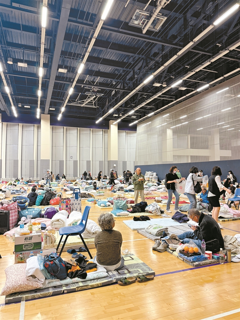 27日17时30分许,本报记者在大埔区东昌街体育馆临时庇护中心看到,此处已安置超300名受火灾影响的居民。工作人员穿梭其中,细声询问居民需求;从拖鞋到保暖衣物,保障物资源源不断送抵现场。除了义工在协助派发各类生活保障物资外,还有警察、医生、护士、药剂师等现场提供支援。