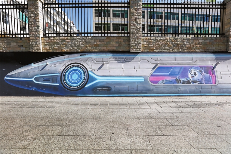 ▲墙绘作品《水墨江南 诗意栖居》为城市空间注入古典文化气息与宁静美感。