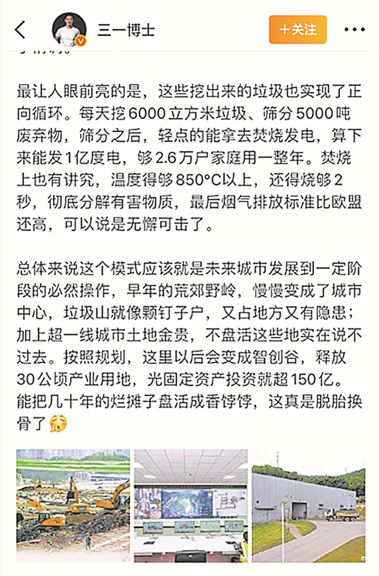 深圳下定决心对填埋场做“肿瘤切除手术”,推动昔日“垃圾山”蝶变为“数创智谷”,以积极有效的扎实行动践行“五个更加注重”:更加注重以人为本、更加注重集约高效、更加注重特色发展、更加注重治理投入、更加注重统筹协调。不同领域的博主大V对此纷纷关注及跟帖,“前瞻经济学人”等行业智库围绕这场“废地变宝地”的探索创新进行了解读。