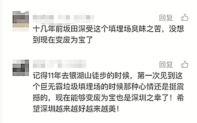 住在坂田的网友@陈先生在评论区留言:“十几年前坂田深受这个填埋场臭味之苦,没想到现在变废为宝了。”
