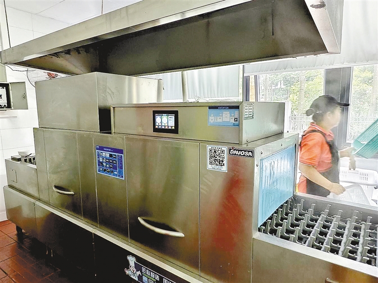 除了速度快,饭堂的“卫生安全感”也拉满了。智能清洁系统全自动进行冲洗、消杀,油污和细菌全都“拜拜”。不少职工说,现在吃饭再也不用纠结餐具干不干净,安心感直接拉满。