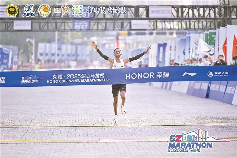 在这条赛道上,除了专业选手的激烈角逐,更多是普通跑者用自己的脚步书写故事。深圳爱跑金刚团团长高慧在这次马拉松中完成了她的第100场全程马拉松。她说:“这不仅仅是数字的增加,更是用脚步一步步丈量出的、融入血液的深圳活力。”前一天身体不适的程序员小杨,以2小时36分01秒的成绩坚持完赛;赛后脱下鞋发现脚上磨出两个大水泡却依然跑完全程的何女士,如愿领取了完赛奖牌……他们的故事,正是马拉松精神最真实的写照。