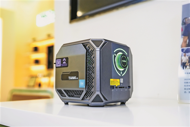 在展厅中,一个炫酷的四方形Mini PC引起了记者的注意。这是创盈芯专为电竞和AI玩家打造的独显Mini主机M1A Pro,仅开模就投入200万元。这款产品个头虽小,却具有超高配置,能够完美匹配游戏玩家对设备的高要求。去年,随着《黑神话·悟空》的风靡,该机型也迅速走红。近年来随着AI PC市场需求的持续扩大,搭载M1A Pro独立显卡的设备凭借其强大普惠的算力优势,展现出越来越显著的市场竞争力。众多AI软件开发公司在现场深入体验后,普遍认为这款产品将引领下一代AI应用潮流。