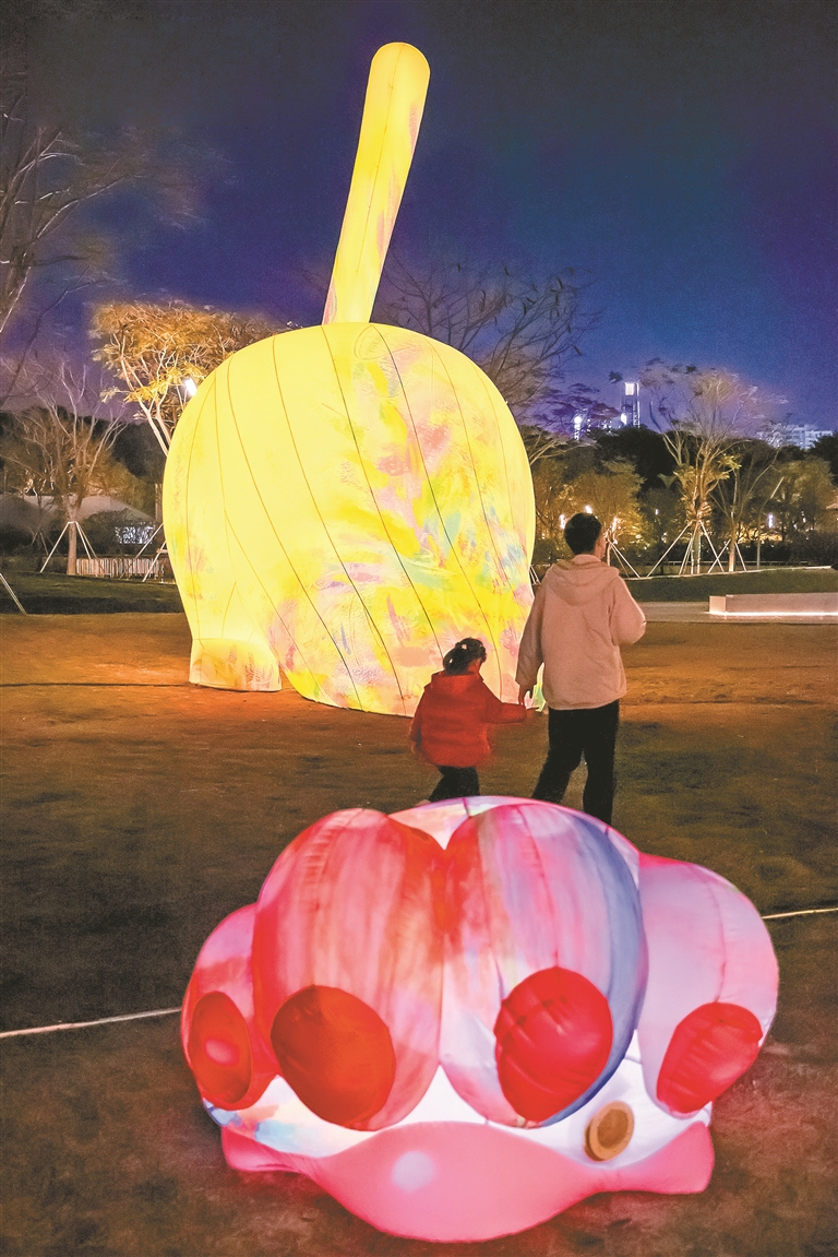 技术与艺术的融入,让福田公共空间更具温度。笔架山体育公园的夜间光影装置,市民靠近即可触发画面变化,“晚上来的人比白天多,孩子觉得新鲜”;市民中心广场的节庆灯光秀,联动多建筑群亮灯,为城市增添仪式感。