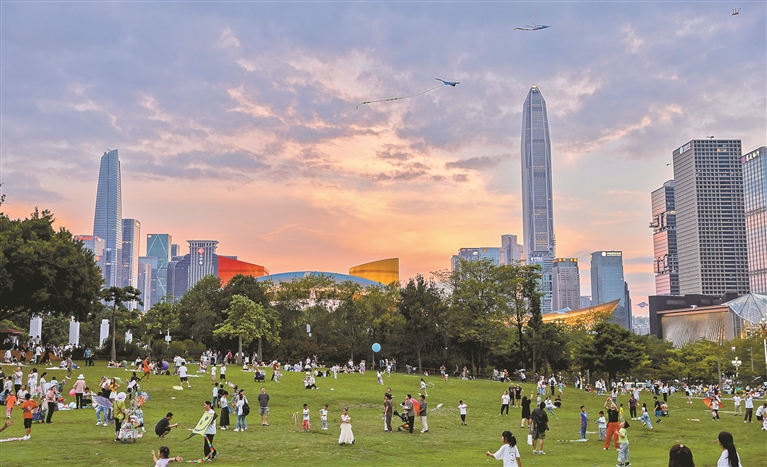 福田总面积仅占深圳4%,去年地均生产总值75.63亿元/平方公里,居全市首位。寸土寸金之下,福田仍将大量土地用于公共空间建设,142个公园织就绿地网络,人均公园绿地8.75平方米,服务覆盖率92.25%,“推窗见绿”成为日常。