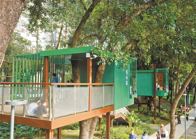 老公园活化成为城市更新新方向。开园21年的园博园,作为深圳“运改维”首个试点,经修缮建筑、活化庭院,引入文化与轻餐饮业态,“沉睡资源”重焕生机。坝坝茶馆的川剧变脸、素食馆的书法展陈,让市民“多了些事可做”。