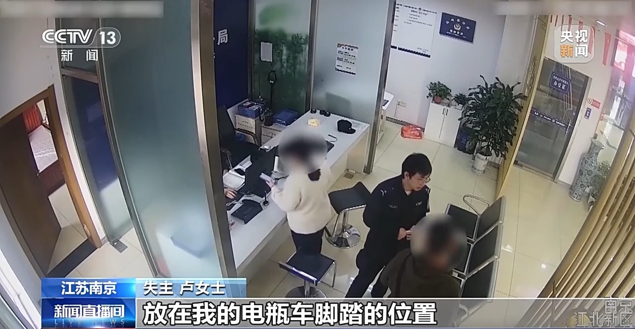 南京市公安局南京江北新区分局山畔派出所民警 王肖:她将一个快递盒子,里面装有价值32万元黄金首饰,从公司总部准备运到一个店里去。在这个过程当中,她是骑电动车的,放在车前面,遗失了。