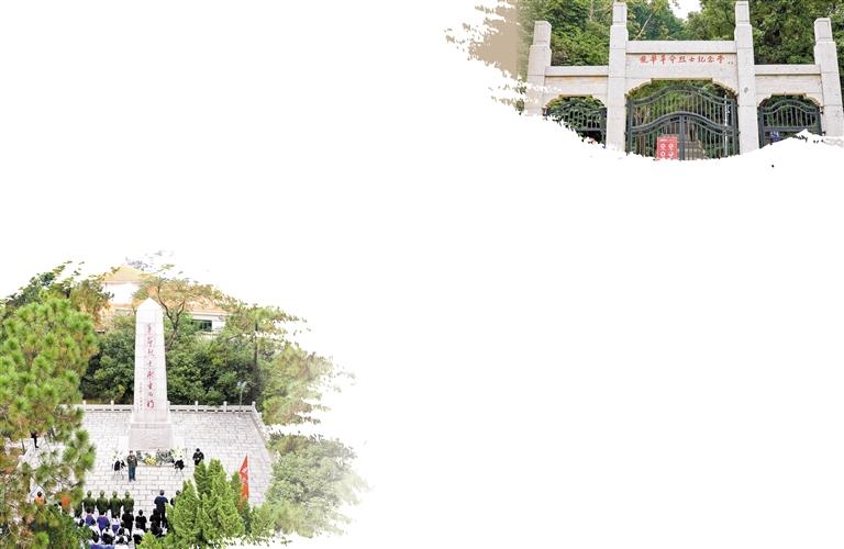 穿过龙华革命烈士纪念亭的牌坊,拾级而上,巍峨的革命烈士纪念碑便映入眼帘。沿石碑一侧台阶而下,王作尧与杨康华两位英雄便长眠于此,他们的墓碑朝向西面,静静凝望着层峦叠嶂的阳台山,守护这片曾用鲜血捍卫的热土。