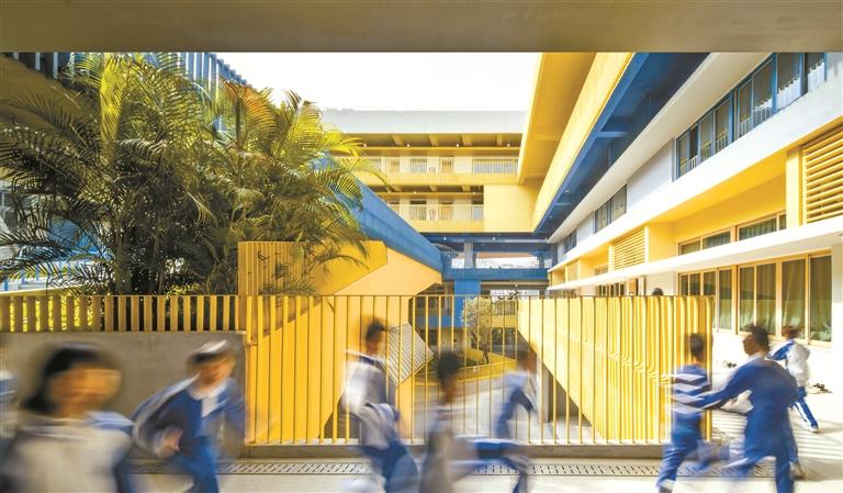 深圳新闻网2025年12月15日讯 来到南约第二小学(宝龙科技城实验学校碧新小学)回访的那天,学校投入使用刚满100天。校方代表彭江平用一个字形容感受:实——实在、实用。他赞叹,能在这么小的面积里面满足学校所有的功能场所、教学场所包括活动场所的要求,已经做到极致了。尤其是针对一二年级小学生的空间打造得非常精彩,营造出了让孩子愿意从教室里走出来、去到一个跟人嬉戏、交流的自然空间和场域。