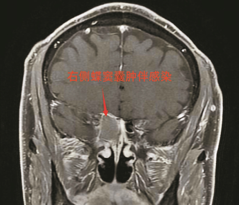经耳鼻喉科进一步检查,确认右侧蝶窦囊肿严重压迫视神经,这正是其视力骤降的主要原因。