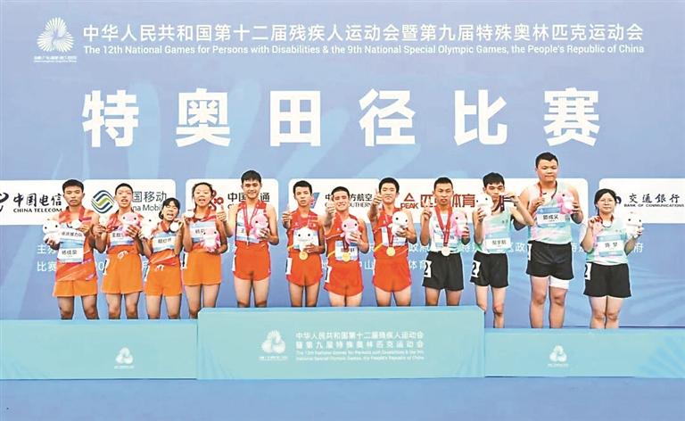 12月11日,广东二团在田径男子16-21岁组4×400米接力中夺得金牌。这支“最强少年战队”来自深圳元平特殊教育学校、深圳市第二特殊教育学校、深圳市宝安区星光学校。