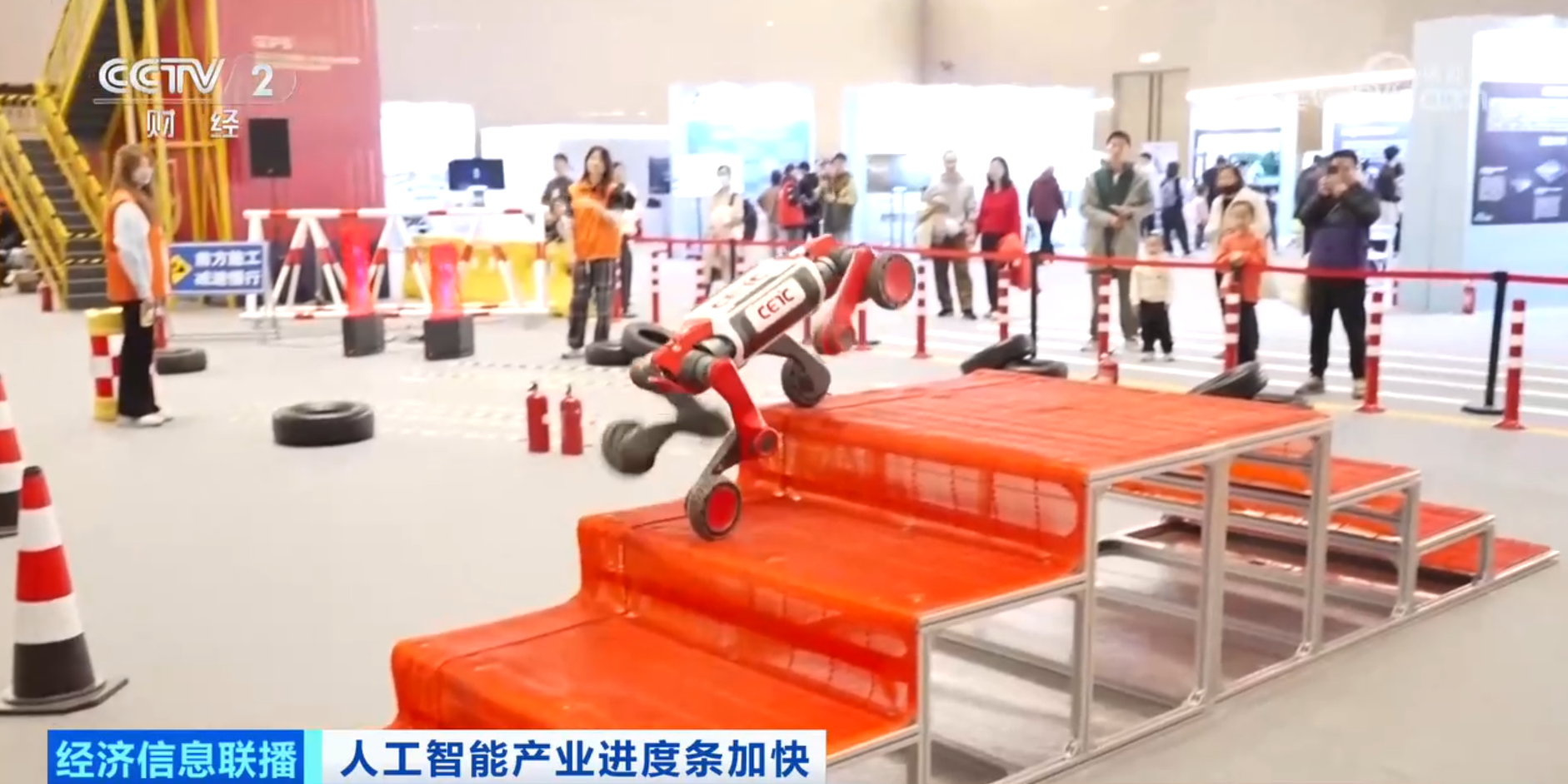 应急救援竞技场裁判员张雷:我们选的这些场景,全部都是和日常应急救援过程当中直接相关联,作为我们评分的规则,比如载重、时间。人工智能的未来就是希望帮助我们做一些极端条件下的工作。
