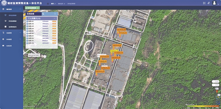 为提升新区核技术利用单位辐射安全监管智能化水平,大鹏管理局创新构建全市首个辐射安全智慧监管体系,搭建“智能化非现场监管系统”(以下简称监管系统),在新区11个典型辐射风险点位试点布设监测监控设备,通过与监管系统联网,在GIS地图上动态生成辐射安全“一张图”,实现辐射剂量率实时监测、异常数据预警等,提升辐射风险源监管的可视化、数字化水平。监管系统可精准识别剂量率超标、设备离线、放射源丢失等多项风险,自动触发多级预警,精准定位异常点位,协助企业负责人、监管人员快速响应处置,建立健全“实时监测—自动预警—限时核查—闭环整改”管理机制,确保风险隐患动态清零。企业负责人也可通过监管系统或移动APP实时查看放射源剂量率水平,促使企业由被动监管向主动防控转变。这是全市首次在核技术利用领域的智能化非现场监管探索,将可能的风险苗头控制在萌芽状态,为新区构筑起一道坚实的“无形”安全防线。
