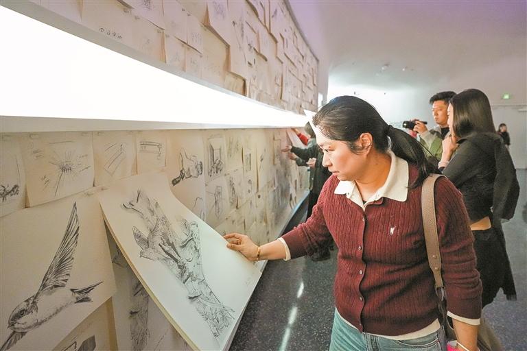 开幕当天,埃斯·德芙琳来到深圳湾文化广场并致辞。她感叹于深圳湾文化广场极具灵性的场域力量。城市对飞鸟的温情呵护激发了她的创作灵感,也构成了本次展览的核心叙事基调。