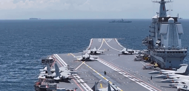 △从上至下依次为辽宁舰、山东舰、福建舰
