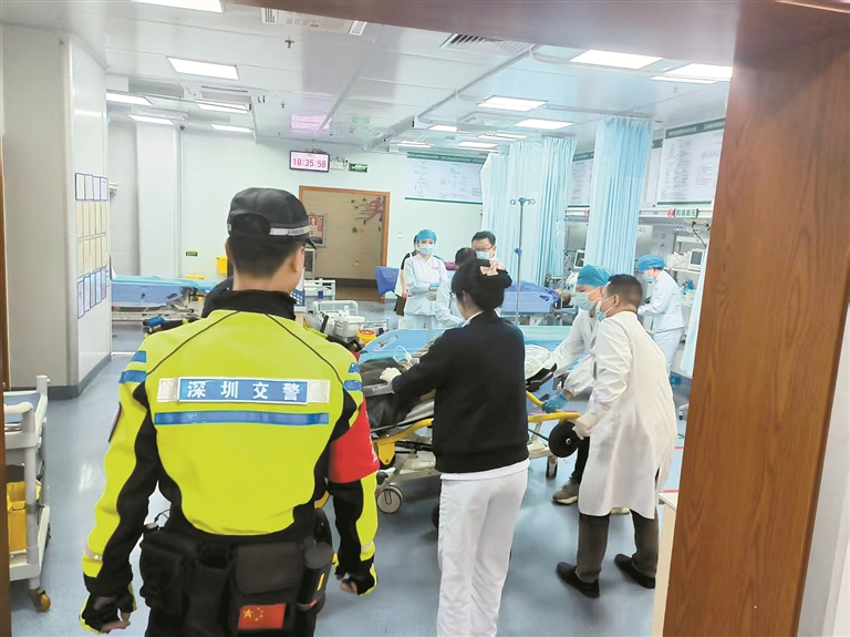 车辆抵达医院后,铁骑队员与医护人员一同小心翼翼地将伤者抬上担架床,并一路护送至急诊室内,确保伤者第一时间得到交接和救治。看到伤者顺利进入急诊室,铁骑队员才放心离开,重新返回工作岗位。