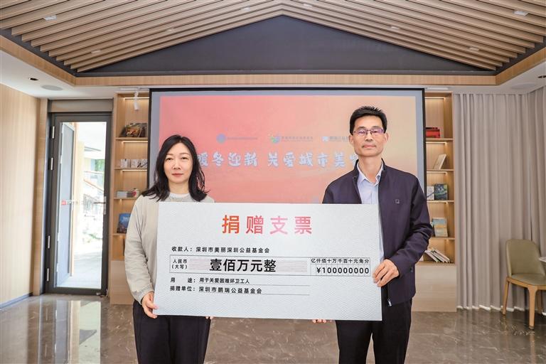鹏瑞公益基金会向美丽深圳公益基金会捐赠100万元爱心善款。