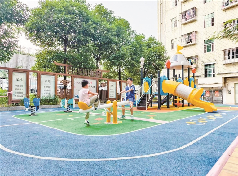 大浪街道的公园里,孩子们正在开心玩耍。