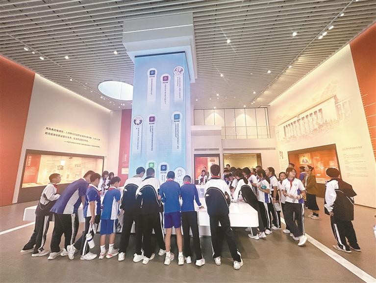 学生们首站来到深圳民法公园。在这里,抽象的法律条文化身为可触可感的景观与雕塑,法治文化巧妙地融入自然与公共空间。在讲解员的引导下,学生们穿过民法墙、民法环等分区,从镌刻着民法原则的石刻、雕塑中感受法治与日常生活的紧密联系。步入民法博物馆,学生们更是体验到“科技+文化”的深度融合,通过数字化展陈、互动触摸屏和情景模拟装置,了解法治发展脉络。