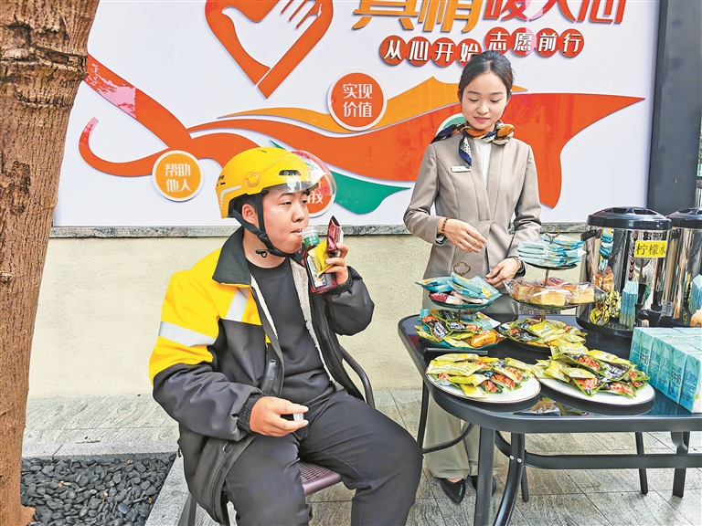 补给站的持续运营,已成为金茂府小区的一张温情名片。两年多来,无论寒暑,补给站始终向户外劳动者开放,体现了社区包容、互助的价值追求。