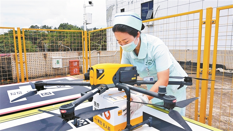 龙华区中心医院无人机运送标本时间压缩至10分钟内。