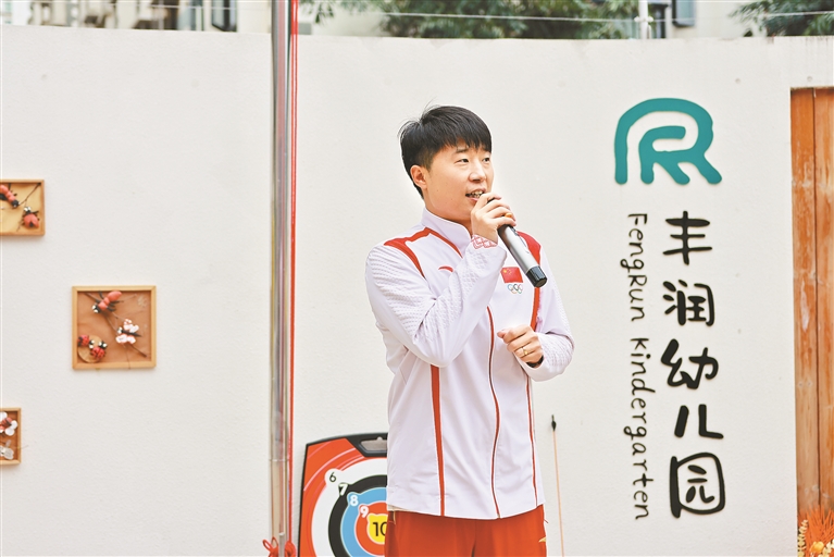 龙华新闻讯(记者 张瑜 文/图)近日,巴黎奥运会男子25米手枪速射冠军、中国国家射击队名将李越宏,先后走进深圳市龙华区行知小学附属丰润幼儿园与深圳市滨苑幼儿园(龙华),以“体育榜样+趣味互动”的形式,为师幼及家长们带来一场兼具运动乐趣与精神启迪的特殊课堂,让奥运精神在幼儿心中播下成长的种子。