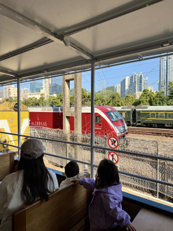 记者体验时发现,不少游客会选择二层车厢,沿线既能看到园区内的老火车,也能在特定位置远望到飞驰而过的高铁列车,新与旧在同一画面中交汇。