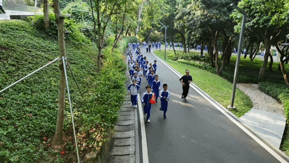 深圳市龙岗区外国语学校(集团)致美学校把临近的龙城公园当作“户外运动主场”,孩子们分批次奔赴自然,告别单调的校园围墙,让跑操与草木清香相伴。