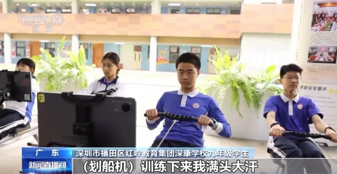 “划船机训练下来我满头大汗,而且明显可以感受到上肢力量有爆发式增长的感觉。”九年级学生谈到。
