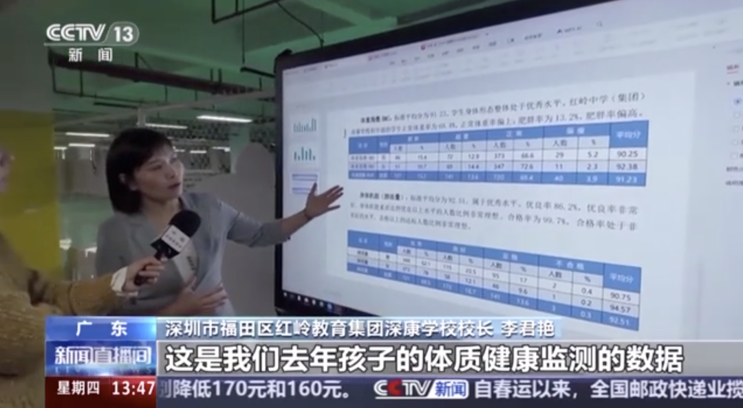 深圳市福田区红岭中学(红岭教育集团)深康学校校长李君艳表示,“通过这些数据的分析和建议,给了老师很多课程开发的思路。我们这学期将在孩子的体能和耐力方面多开发一些课程,让孩子把肥胖率指标降下来。”