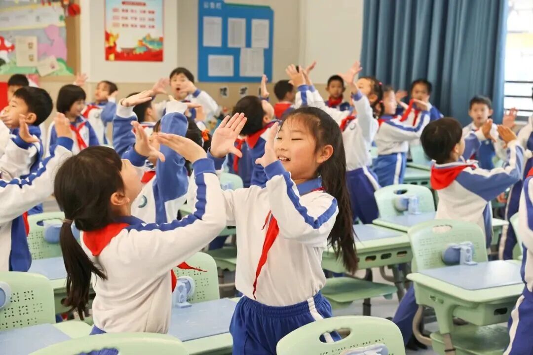 “以前下课就在班级门口、空旷的场地散散步什么的,现在迷上了课间运动。”五年级学生表示。