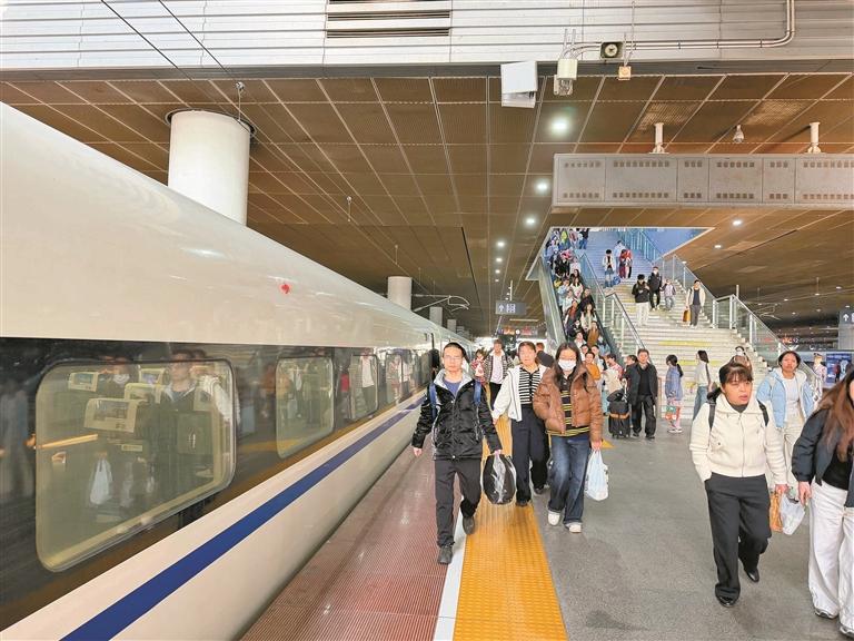 旅客在深圳北站乘车。龙华新闻记者 蔡维泽 通讯员 田恬 摄