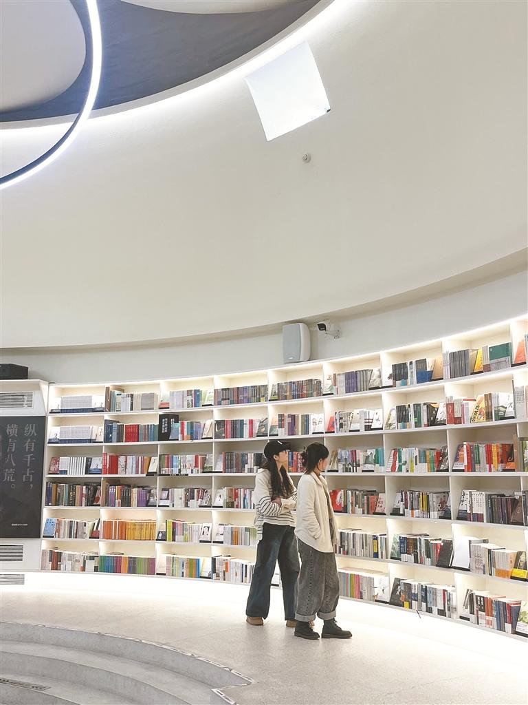 张旋与朋友打卡江门开平书店。受访者供图