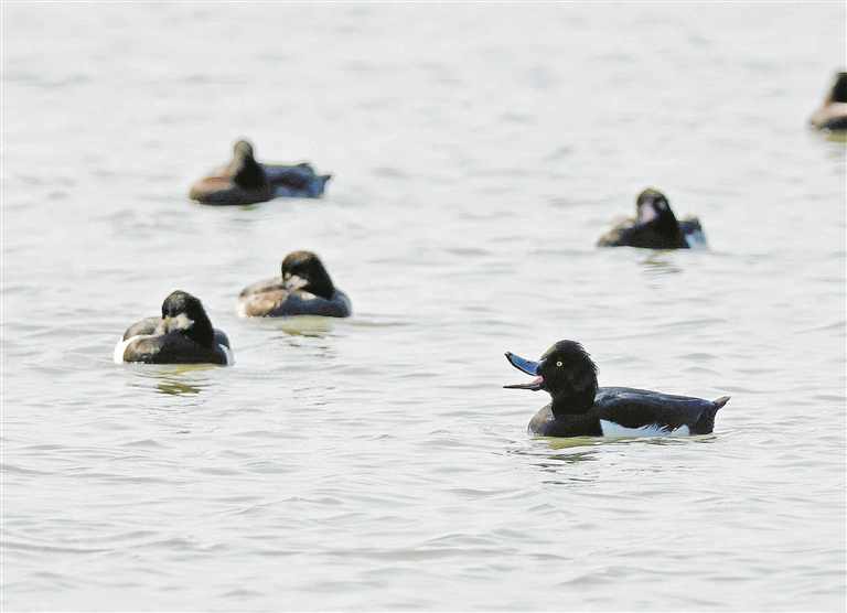 在深圳湾越冬的凤头潜鸭。